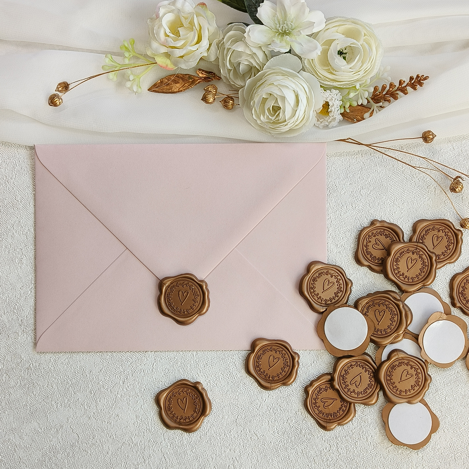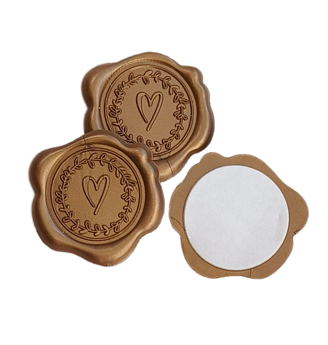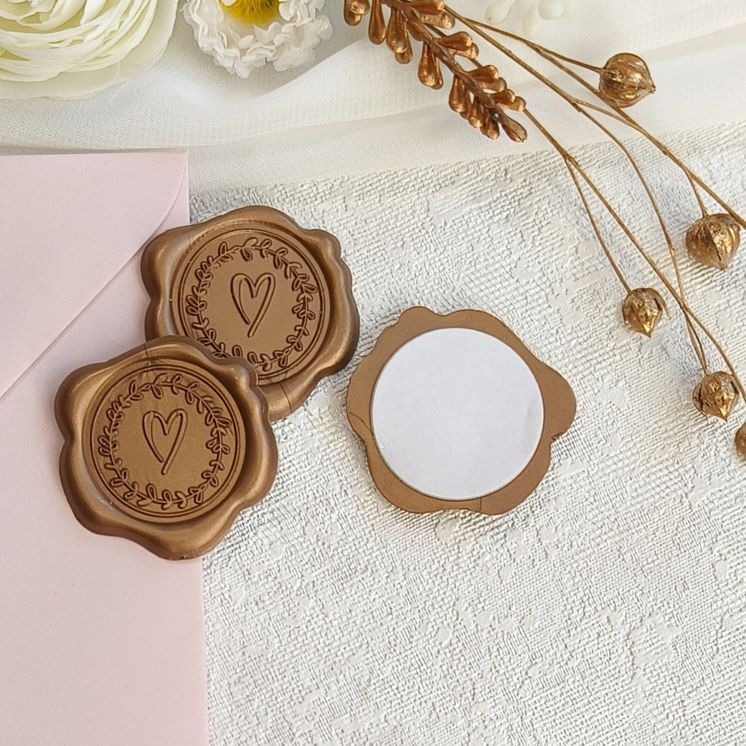 Pieczęć woskowa z motywem wianka z serduszkiem.