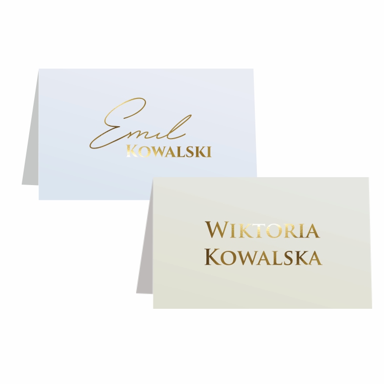 Za dodatkową opłatą istnieje możliwość, nadruku imion i nazwisk gości różnymi czcionkami, np jak na zdjęciu: imię ozdobną kaligrafowaną, nazwisko prostą drukowaną,