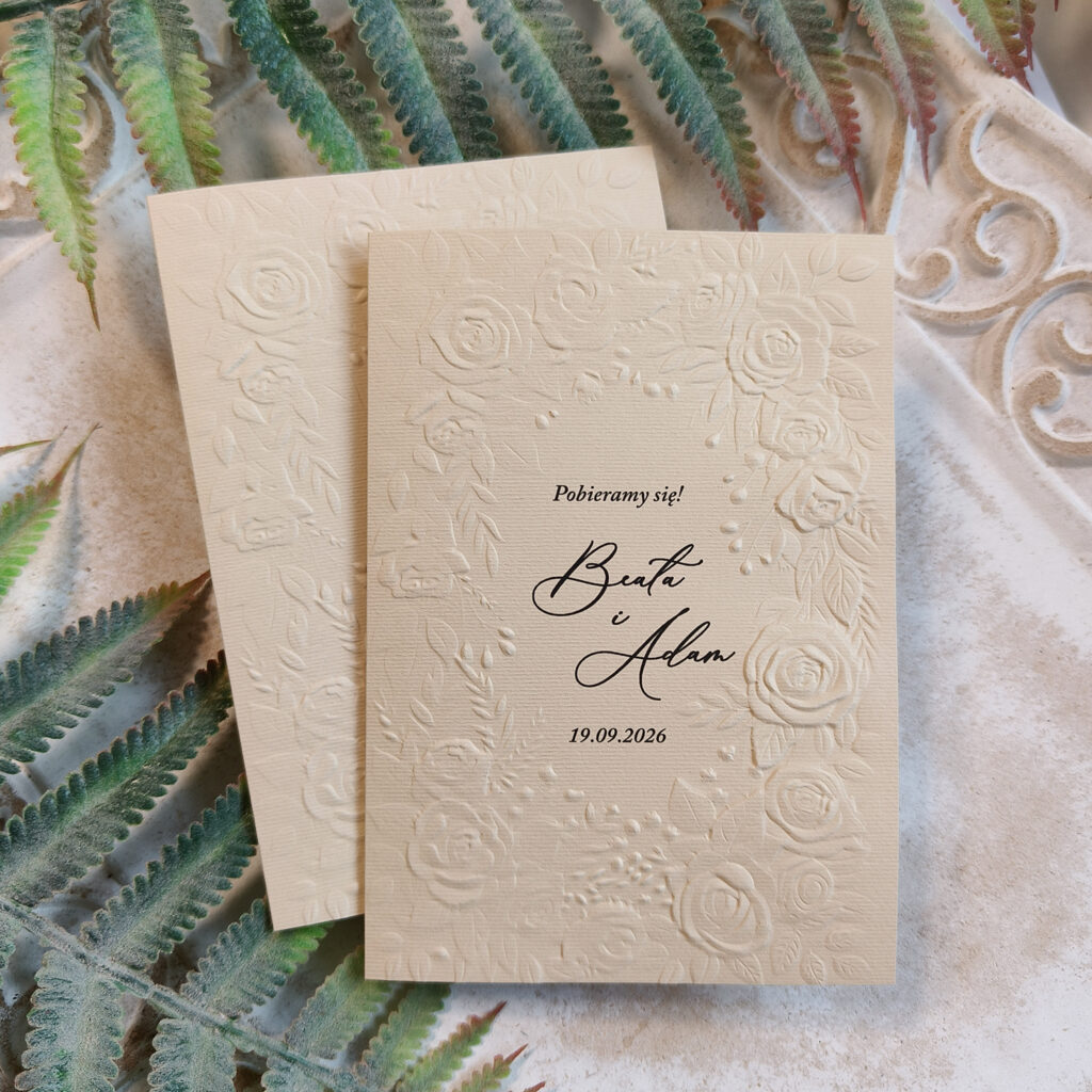 Wyjątkowe zaproszenia na ślub z kwiatowym wytłaczanym wzorem
