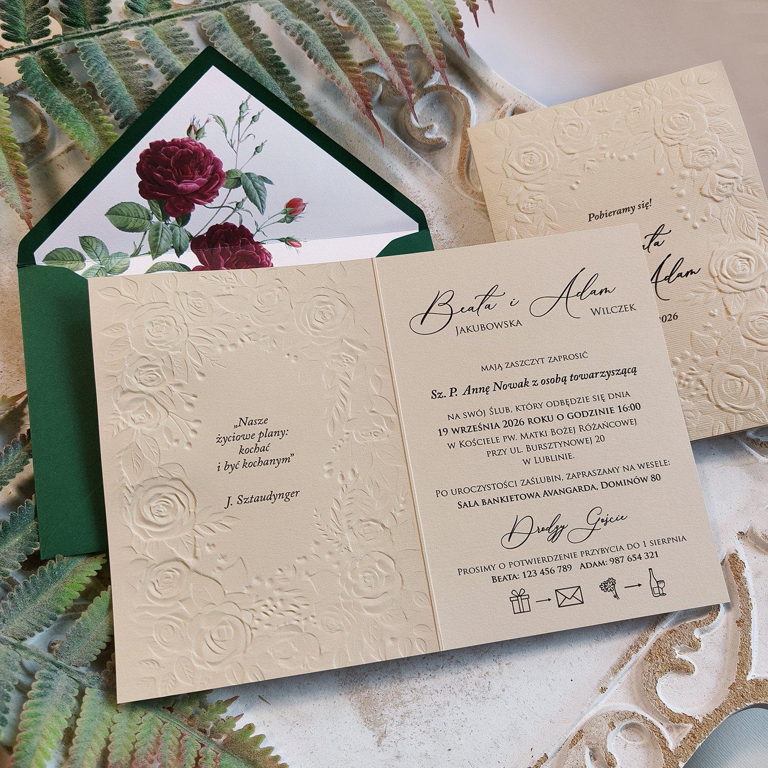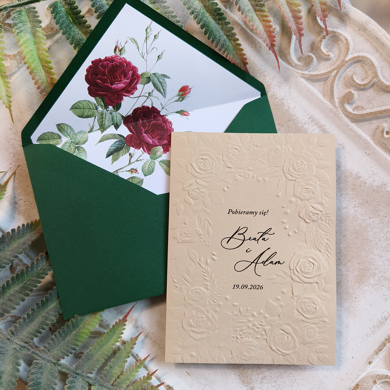 Wyjątkowe zaproszenia na ślub z kwiatowym wytłaczanym wzorem