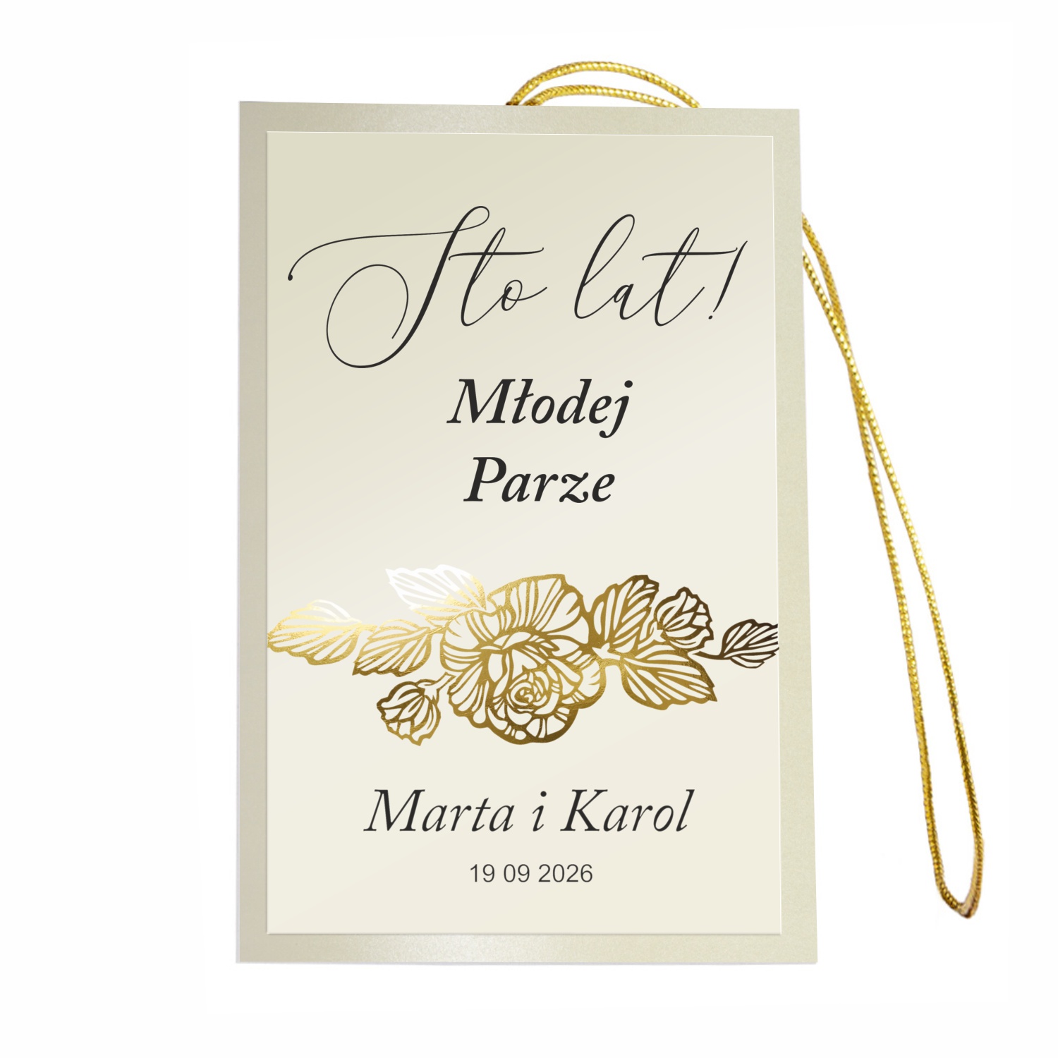 Personalizowane zawieszki na alkohol weselny z oryginalnymi tekstami rozbawią gości i zachęcą do wznoszenia toastów.